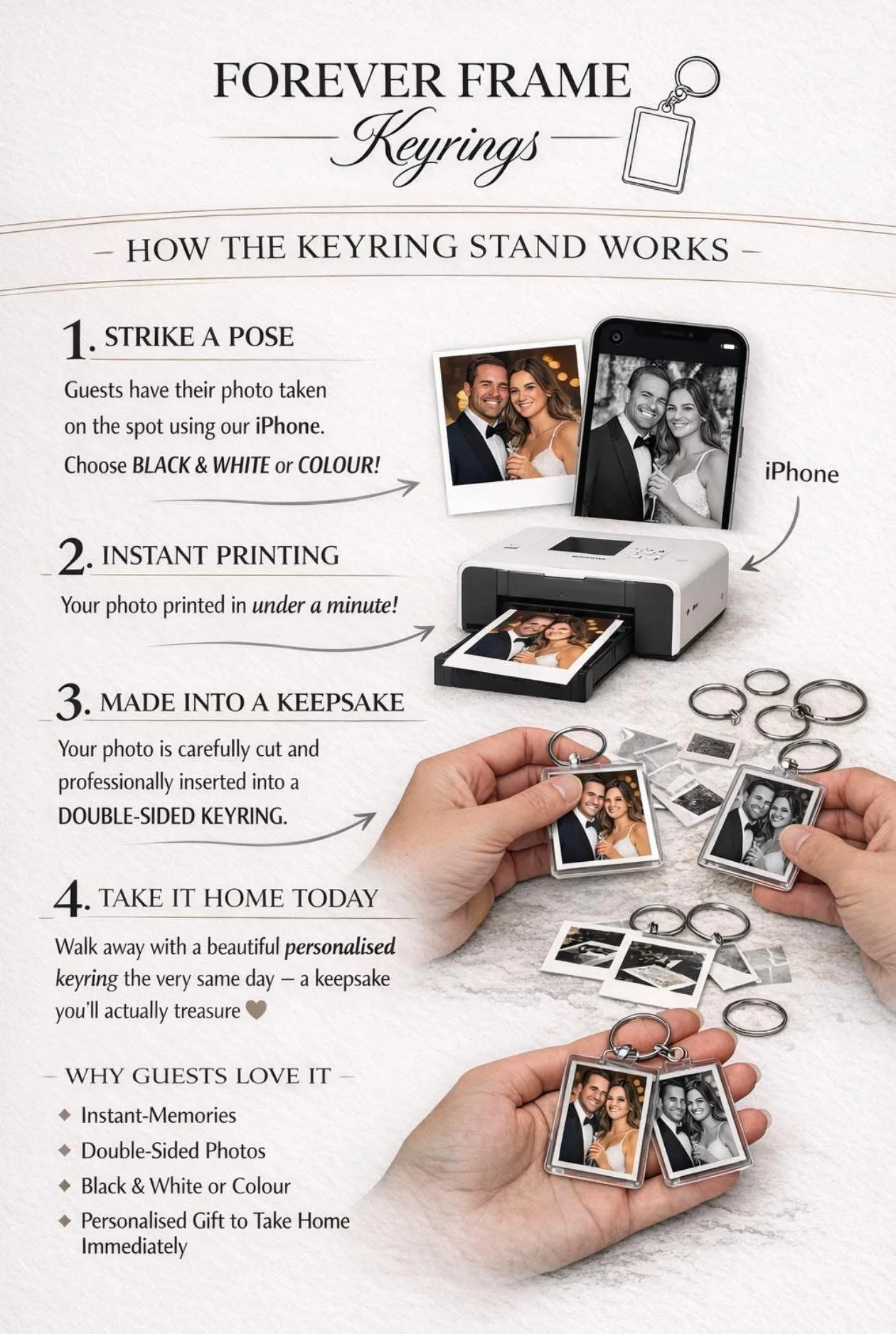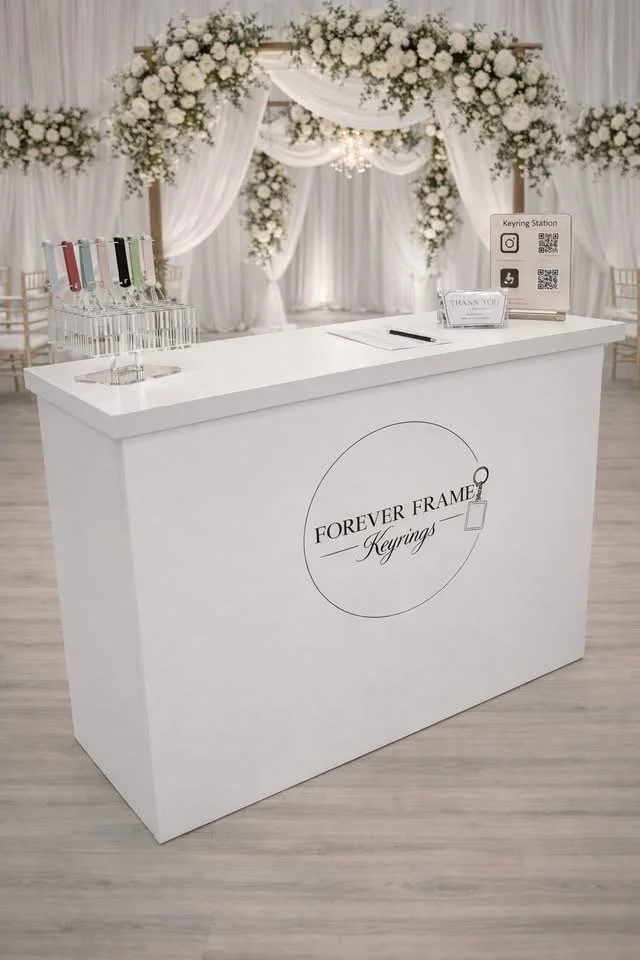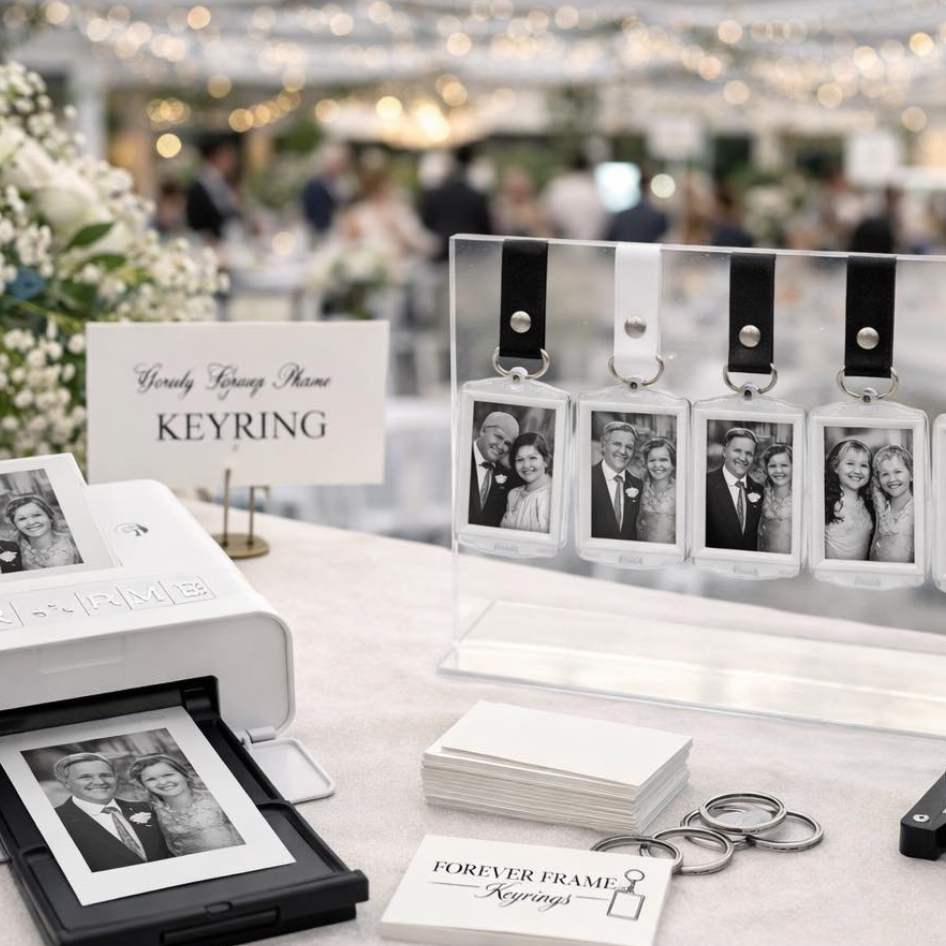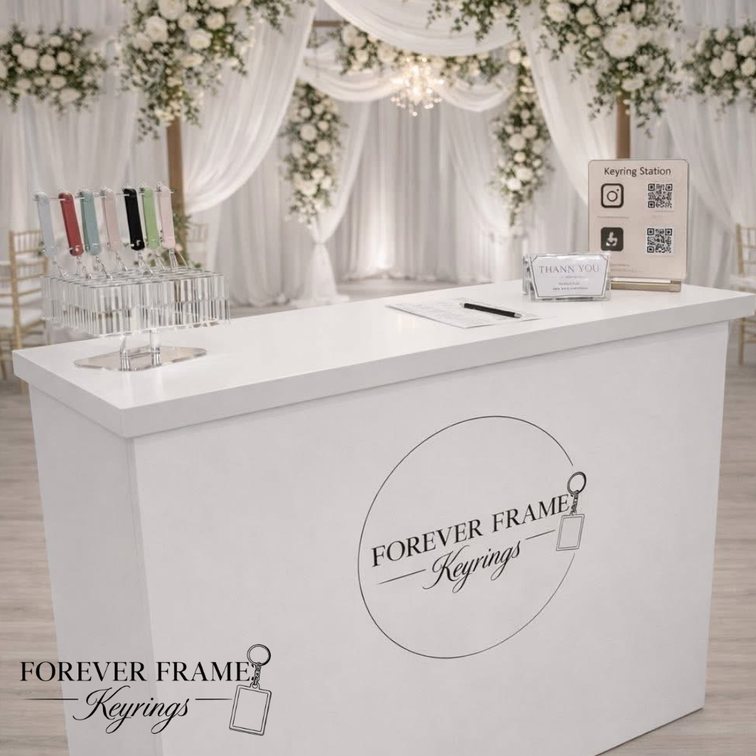 I had the pleasure of working alongside Forever Frame Keyrings at a wedding in Sheffield. They were very approachable and friendly and even sorted me out with my own key ring! They have a great set up that is efficient and clients don't have to wait long to receive their products. Their keyrings are premium quality and their booth will fit into any environment they are set up in. I would 100% recommend Forever Frame Keyrings for your wedding/event